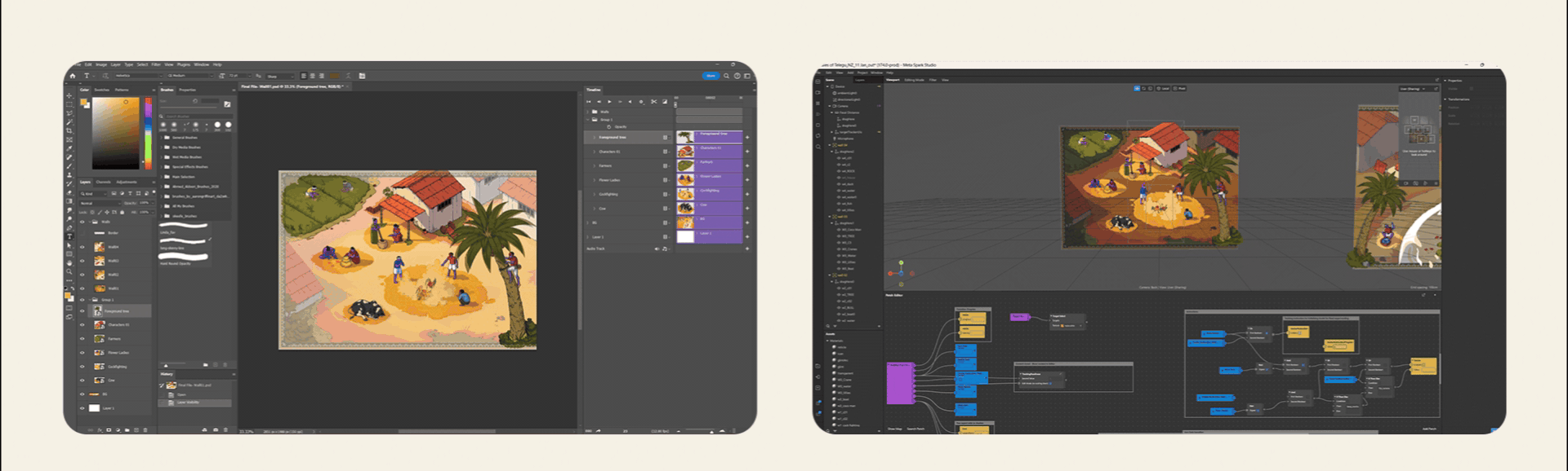 A daily dance of harmony and hardwork. The village is deeply connected to the Earth. Thrilled to share our newest venture with Tales of Telugu Restaurant in Hyderabad! We've dabbled in traditional storytelling by creating illustrated mural and put it into motion with AR. Bringing this illustration to life in AR wasn't a straight shot. Post-launch glitches prompted us to do a overhaul of the app to ensure a seamless AR experience.